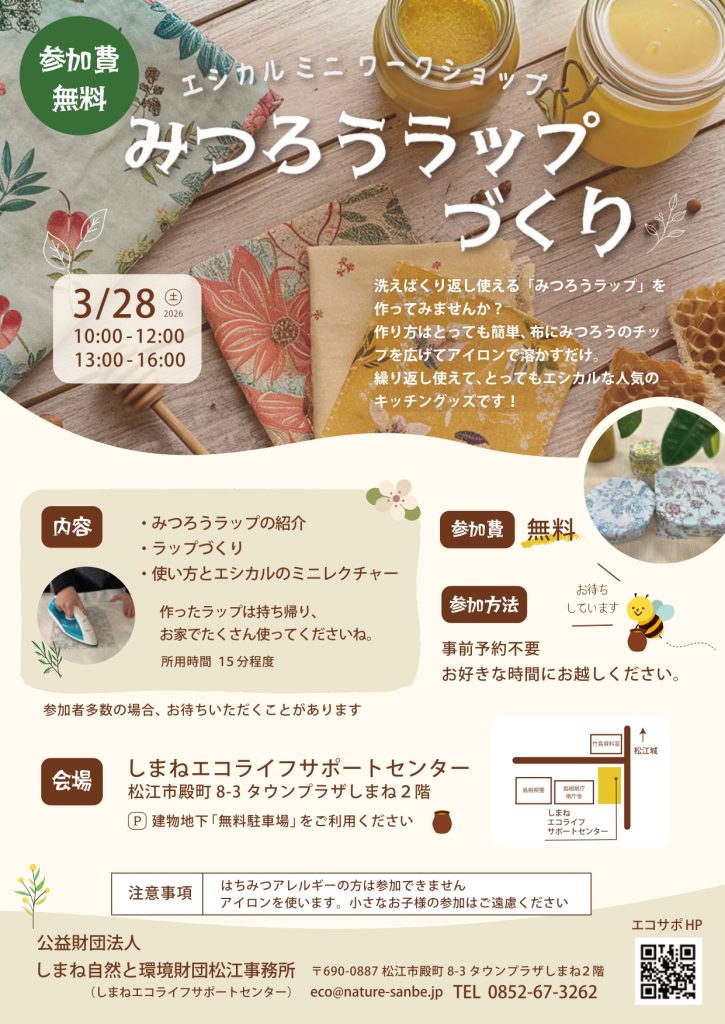 エシカルミニワークショップ「みつろうラップづくり」(3/28開催・島根)