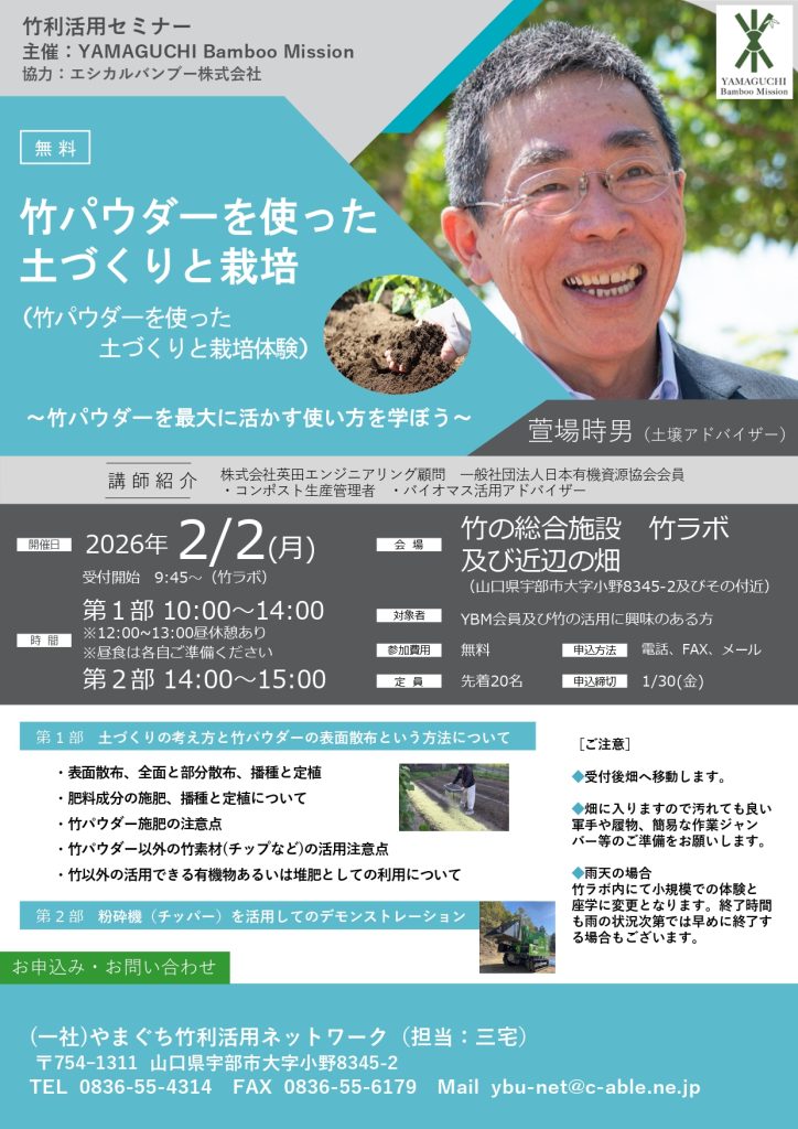 竹利活用セミナー「竹パウダーを使った土づくりと栽培」(2/2開催、1/30締切・山口)